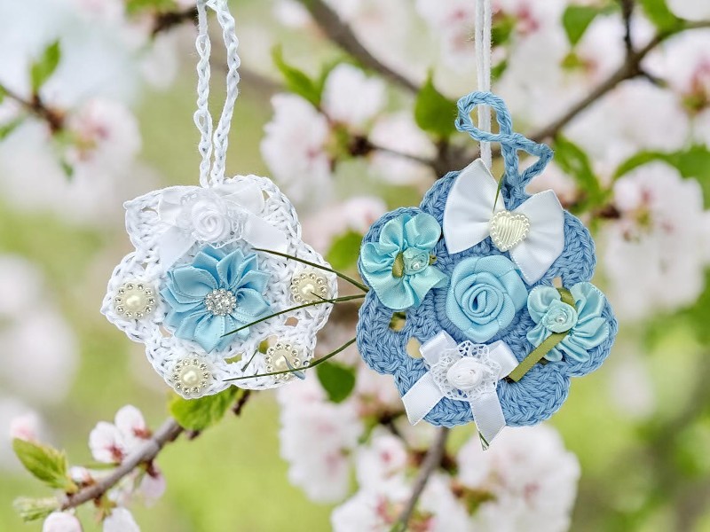 Die Anhänger sind nicht nur hübsch anzusehen, sie erzählen auch Geschichten, Geschichten von Zeit, Geduld und Hingabe. Jede Masche, jeder Schmuckstein, jede Schleife und jede Blüte entstehen in ruhigen Momenten, ganz klar mit viel Liebe zum Detail und kreative Ideen.