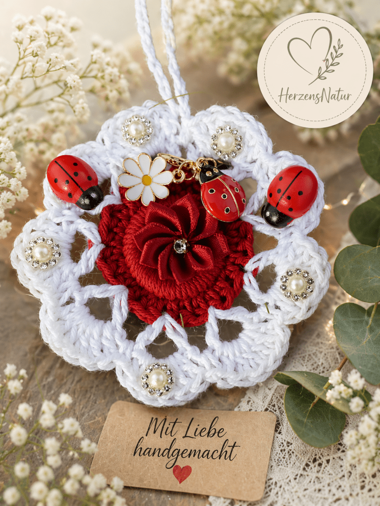 Mit viel Liebe zum Detail entstehen handgemachte Anhänger. Es sind oft die kleinen Dinge, die uns wirklich berühren. Ein liebevoll gehäkelter Anhänger, zart mit feinen Details verziert, bringt einfach Freude in unseren Alltag. Jeder Anhänger wird von Hand, mit großer Sorgfalt gefertigt. Sie eignen sich sehr gut als persönliches Geschenk, als Mitbringsel, oder auch als schöne Dekoration.